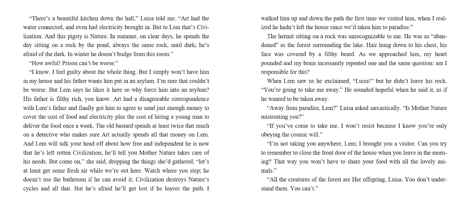 There's no reason why a society consisting of rational beings capable of empathizing with each other, complete and having no natural reason to compete, should have a government, laws or leaders.