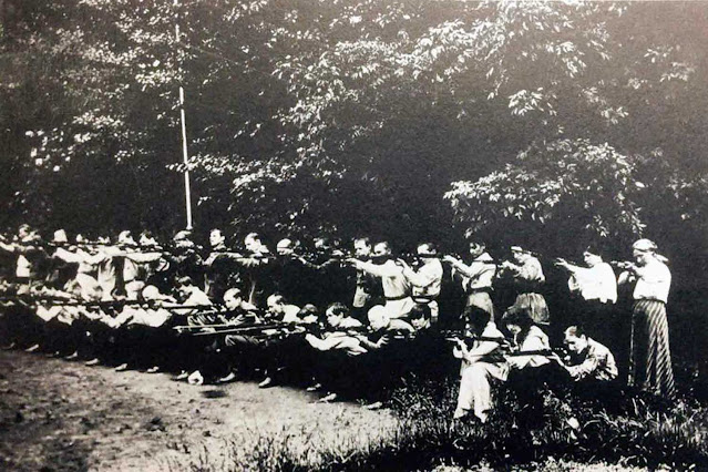 | 1913: The People's Army training, organisation founded by East End Suffragettes to defend demonstrations and Union pickets. |